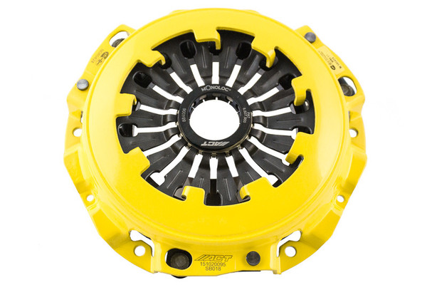 SB018 is an ACT pressure plate that uses exclusive diaphragm design to increase clamp load, reduce deflection and maximize clutch life. All diaphragms endure a four-stage, heat-treating process for unparalleled performance. ACT pressure plates have precision cover stampings to provide rigidity and consistency. ACT's Heavy Duty pressure plates increase clamp load by 20 to 50 percent. ACT's Heavy Duty pressure plates are recommended for use with a street or race disc. Monoloc is a one-piece, direct replacement or upgrade to the standard, two-piece wedge collar and wire ring featured in pull-type clutches. The spring tension of the segmented retaining ring is carefully calculated and tested for optimal performance. It provides uniform loading on the bearing and pressure plate to assure proper alignment, regardless of driver influence or vehicle modifications. Monoloc's hardened chrome-moly steel construction will provide years of service.