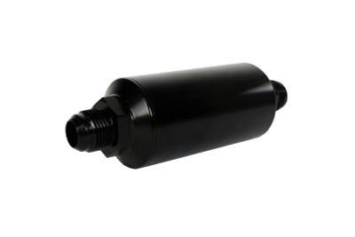 Finally, a place where bigger really is better. What defines an efficient filter? As little pressure drop as possible. How do you achieve a low pressure drop? Surface area. How do you get a lot of area into a compact in-line filter? Pleats. More pleats means more surface area and, in turn, better-flowing filters. Aeromotive in-line filters boast the most surface area possible for the highest flowing filters. Machined out of aircraft-grade billet aluminum alloy. Precision-coated with black anodizing. Can be used with E85 and alcohol.