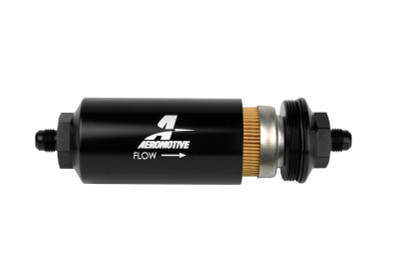 AN-08, 40 micron stainless steel element, black anodize finish An inexpensive insurance policy to protect your investment, proper filtration is key to fuel system performance. Engineered filter solutions are required to achieve protection with minimum restriction. For 200 ? 3,000 plus HP applications, our filter assemblies offer unmatched flow, ease of installation and maintenance, along with the impeccable machining and finish you?ve come to expect from all Aeromotive components. High-flow, 40-micron stainless steel cleanable element. Flows 2,000 lb/hr with a pressure drop of less than 1 PSI. Males AN-08. All filter assemblies feature an O-ring for positive sealing in high pressure applications. CNC-machined from 6061-T6 aircraft aluminum. Bright dip black anodized finish for a corrosion resistant, show car quality appearance.