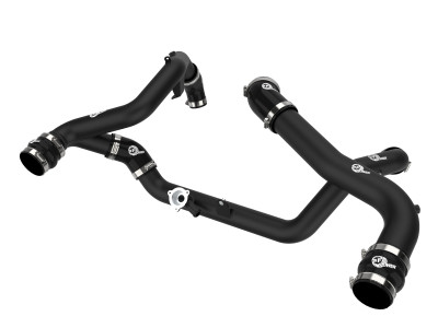 Smooth transitions in the mandrel-bent aluminum pipes decrease turbulence and minimize pressure loss, increasing horsepower and torque. This charge pipe kit provides a smooth transition between the turbo and the engine for lower operating temperatures and increased power. This kit includes high-quality, stainless-steel, SmartSeal clamps and heavy-duty, 5-ply, polyester reinforced silicone couplings for superior strength and durability. Finished in wrinkle black powder coating with a unique laser-etched aFe POWER logo for a custom look.