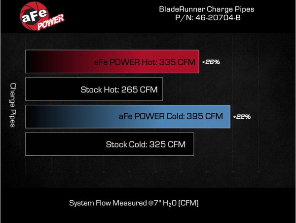 Smooth transitions in the mandrel-bent aluminum pipes decrease turbulence and minimize pressure loss, increasing horsepower and torque. This charge pipe kit provides a smooth transition between the turbo and the engine for lower operating temperatures and increased power. This kit includes high-quality, stainless-steel, spring-loaded t-bolt clamps and heavy-duty, 5-ply, polyester reinforced silicone couplings. This charge pipe kit also features factory style billet aluminum quick-connect adapters with o-ring seals to ensure a leak-free fit while maintaining superior strength and durability. Finished in wrinkle black powder coating with a unique laser-etched aFe POWER logo for a custom look.