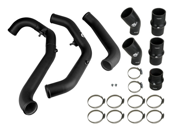 Smooth transitions in the mandrel-bent aluminum tubing decrease turbulence and minimize pressure loss, increasing horsepower and torque. This tube kit includes high-quality, stainless-steel, clamps and heavy-duty, 5-ply, polyester reinforced silicone couplings for superior strength and durability. Finished in Wrinkle Black powder coating with a unique laser-etched aFe power logo for a custom look. When it comes to engineering for power, performance, protection and value, aFe POWER is the only choice.