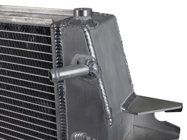 Oversized Tube and Fin Core: This BladeRunner Street Series Radiator features a 2-3/4" thick tube and fin core which provides greater heat dissipation and better coolant flow than the factory radiator for optimum cooling efficiency.End Tanks: The fabricated end tanks are constructed out of 1/8" aluminum plates for strength and durability.Billet Aluminum Inlet/Outlet: Billet aluminum inlet and outlet for long-lasting reliability.TIG-Welded: 100% TIG-welded for proven strength and durability.Brass Drain Valve: BladeRunner Street Series Radiators include a brass drain valve with fitting to easily connect a hose for draining coolant.Perfect Fit: Utilizes the factory mounting locations to provide stability for a hassle-free installation.Custom Appearance: Brushed aluminum finish with an aFe POWER logo painted on the front.When it comes to engineering for power, performance, protection and value, aFe POWER is the only choice.