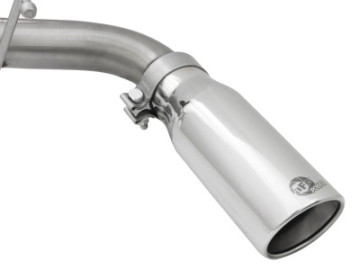 Testing: Up to 31% increase in Flow. 14" Muffler: This system incorporates a large 14" stainless steel muffler which produces a mellow sound while virtually eliminating exhaust drone. Flow and Performance: This MACH Force-Xp cat-back exhaust system is constructed of 2-1/2" mandrel bent 304 stainless steel tubing for maximum flow. Smooth transition bends allow for low turbulence, increasing horsepower and torque. Retains Rear Catalytic Converter: The rear cat is retained on this system to maintain a smooth deep sound but more importantly to keep the system street legal. Dual 3-1/2" Polished Center Exit Tips: Finishing off the exhaust are dual 3-1/2" polished stainless steel tips with laser-etched aFe power logos for an aggressive style.
