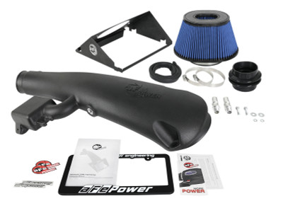 Dual Inlet Large 5-Layer Performance Air Filters: This sealed intake system utilizes pre-oiled, large 7" tall radial flow performance air filters with 5-layers of progressive finer mesh cotton media providing maximum airflow and performance. Top Mounted Heat Shield Design: aFe developed this aluminum heat shield to snap onto the top of the lower half of the factory air box to provide a hassle-free installation utilizing factory mounting locations. Aluminum Cover: An aluminum cover is used to finish off this intake and add a sense of style to your engine bay. Equal Length Intake Tubes: Dual mandrel-bent brushed aluminum equal length intake tubes are designed with an H-pipe to balance intake tube pressure and maximizes airflow and velocity. Hassle-Free Installation: All clamps, couplings, and hardware are included for hassle-free installation. This is a direct bolt-on kit that requires no cutting or drilling on factory parts. Note: his product is not currently CARB exempt and is not available for sale in California or for use on any vehicle registered with the California Department of Motor Vehicle.