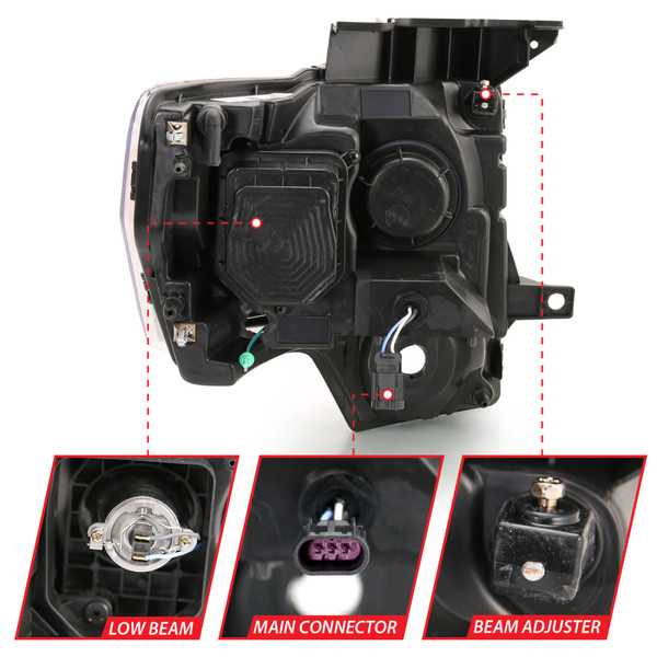 ANZO 2009-2014 Ford F-150 Projector Headlight Plank Style Chrome Amber - 111444