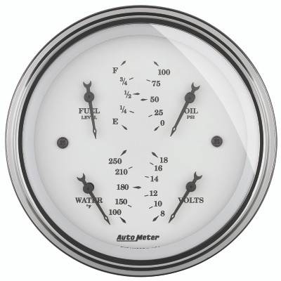 AutoMeter Gauge Dual Fuel & Oilp 3-3/8in. 0 Ohm(e) to 90 Ohm(f)& 100PSI Elec Old Tyme White - 1624