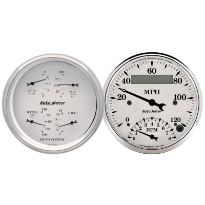 AutoMeter Gauge Kit 2 Pc. Quad & Tach/Speedo 3-3/8in. Old Tyme White - 1620