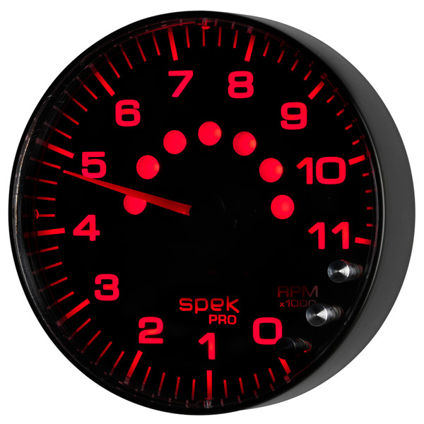Autometer Spek-Pro Gauge Tachometer 5in 11K Rpm W/Shift Light & Peak Mem Black/Black - P239328
