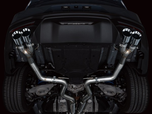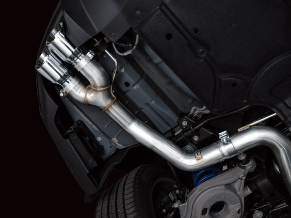 Presenting the AWE Cat Back Exhaust for the Ford S650 Mustang GT. You’re looking at the Track Edition - the rowdiest version of the lineup. The AWE Track Edition has minimal filter in the rear via dual straight lengths of 3” stainless steel - it’s light, it’s loud (in & out), it’s cost-effective, and it isn’t for the faint of heart–you’ve been warned (and for this reason, the Track Edition can not be returned for sound reasons!). Full 3” & modular, the Track Edition features a full 3” design with modular, slip-fit inlet adapters for perfect mating with the factory headers, while facilitating a dual 3” connection for drivers looking to get spicier upstream one day (or now). And thanks to the precision AWE H-pipe, your 5.0L V8 will produce a deep, rich muscle tone with minimal wrasp (unlike an X-pipe). The Track Edition features straight-through bullet-style resonators in the mid pipes to further defeat wrasp, which becomes especially helpful should you upgrade your headers. When it comes to power to the pavement, we’re looking at dyno-verified gains of +12 hp and +10 lb-ft of torque at the wheels on an otherwise stock vehicle. The full AWE Track Edition is 100% emission-friendly, not interfering with any factory emissions equipment. Bringing up the rear are quad 4.5” slash-cut, double-walled, and individually adjustable tips, available in chrome silver or diamond black. Made in PA, USA: engineered, designed, and manufactured in-house at AWE using US-sourced .065”-wall T304L stainless steel. All this plus 50 state emissions compliance, AWE’s Fitment Guarantee, No Check Engine Light Guarantee, and the AWE Lifetime Warranty.
