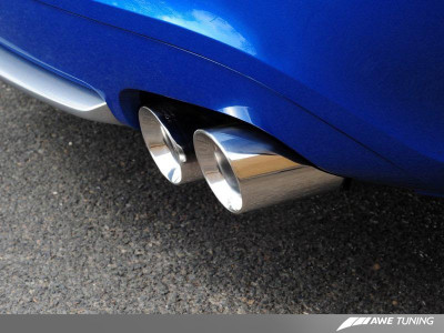 AWE A4 Research and Development has yielded an exhaust that is remarkably civil while idling / part throttle cruising, but unleashed at full throttle it produces what some have called a "war-cry wail." Sophisticated, refined, and powerful, all in one package. Making good, better The stock exhaust system on a B8.5 A4 is full of crimped tubing obstructs exhaust flow and robs horsepower. The AWE B8.5 A4 Touring Edition Exhaust and Downpipe are designed using CAD modeling software to produce smooth gradual bends and to eliminate any interruption to the flow of exhaust gasses. Our improvements to the exhaust path result in gains of 8-9 horsepower and 6-7 lb ft of torque at the crank. AWE A4 Touring Edition Exhaust - Quad Outlet (Four total tips, two on each side) The quad-tip version of our A4 Touring Edition Exhaust features four 90mm (3.50 inch) slash-cut tips, located on each side of the car. The tips sport engraved AWE logos and are double-walled to ensure a mirror polish, even under hard usage. Each tip is individually adjustable, so stagger and depth into bumper can be set according to personal taste. This system will not work with the factory valance and requires a quad-tip conversion. The purchase of an Conversion Kit in order to allow quad tip fitment. Additional sound level tuning For the enthusiast interested in a more aggressive sound, we offer our Resonated Performance Downpipe. The factory unit contains a fairly large straight through resonator. By replacing this large piece with a more compact but still straight through resonator, we were able to increase sound volume while adding a slightly deeper tone. Testing showed no power increase in adding the downpipe. It will mate to our exhaust system or any other exhaust designed to work with the stock downpipe. Please note: This product cannot be returned or exchanged based upon sound satisfaction.