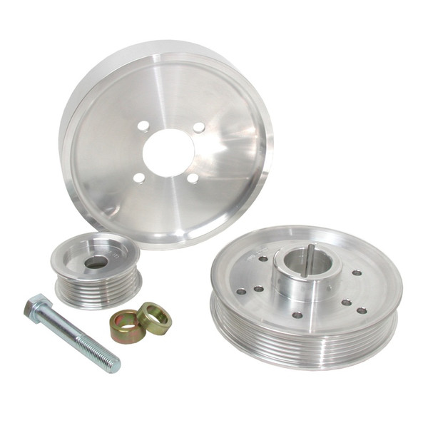 Install a set of BBK performance underdrive pulleys and see an average of 8-15 additional horsepower over the stock pulleys. Under drive pulleys increase engine output by reducing the draw of the engines accessories by slowing them down and reducing the HP they use. Additional and significant performance improvements can be seen by reducing the weight of the pulley versus the original pulley which is why we recommend the BBK CNC Machined billet aluminum pulley kits for maximum horsepower gains. ALL BBK pulley kits are designed as direct bolt on replacements for the current factory pulleys and retain full cooling and charging characteristics. BBK under drive pulley kits are vehicle specific and each kit comes with complete installation instructions and allow the re-use of existing serpentine belts.