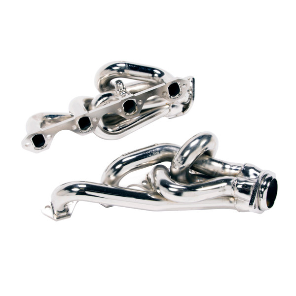 These BBK Performance shorty tuned Length exhaust Headers are designed and constructed as direct fit replacements for all 94-95 Mustang 5.0 applications. Each header is manufactured with 1-5/8 in. CNC mandrel bent tubing that offers unrestricted exhaust flow for increased horsepower and torque over factory OEM manifolds. BBK tuned Length headers offer improved scavenging waves for better combustion, which leads to improved performance and fuel economy over stock or equal Length headers. As with all BBK Performance exhaust headers they feature a 3/8 in. laser cut flange for additional strength and a guaranteed leak free fit. All headers are robotically and precision hand welded and then pressure tested to ensure years of reliability and performance in the real world. All BBK exhaust headers are available in Titanium Ceramic or polished silver ceramic coated finish and include new exhaust header gaskets, header bolts and hardware to complete the installation.