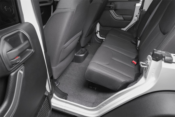No sanding,prepping and damage installation. Installs quickly no need to remove seat bracket or center console. Custom contoured fitment for a snug tight finish.Heavy duty 1/4in. textured anti skid finish. Thick foam layer provides superior dent protection. Cushioned knee friendly surface.Non-woven fiber backing will not scratch jeep floors. Limited lifetime warranty.