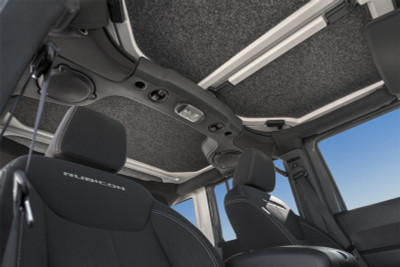 This 100% waterproof, fully custom die cut headliner kit installs quickly without the need to remove your hard top. The individual pieces can be quickly installed by removing the specially designed tape and pressing firmly into place. The BedRug material resists all harsh chemicals, and will not stain, stink, mold or mildew. The 1/2-inch polypropylene foam will help insulates your interior from road noise and heat.