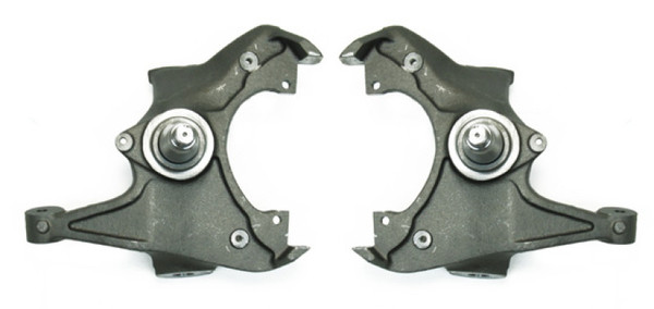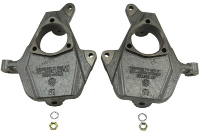 In 1983, Belltech developed one of the industry's first revolutionary products to help jump start the Sport Truck craze, the Drop Spindle. By relocating the spindle pin (Note: Application, while improving handling and retaining factory ride quality. Belltech spindles maintain critical suspension geometry and eliminate excessive ball joint, shock and tire wear common to other methods of lowering. Each spindle is crafted from powdercoated, CNC machined, high strength ductile iron castings providing the structural integrity to meet and exceed all factory specifications & requirements.