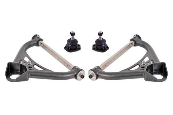 A-arms are one of the most important, yet overlooked suspension components. They are the direct link between the front wheels and the chassis. Any deflection causes a change in alignment, which results in poor performance and driving feel. Fabricated from heavy-duty 1.500-inch, 0.095-inch wall and 1.525-inch, 0.095-inch wall DOM tubing with laser-cut, CNC-formed plate steel braces for extra strength, deflection is eliminated with A-arms from BMR Suspension. BMR(TM) s AAL321 Lower A-arms are fitted with heavy-duty ball joints and greaseable, Delrin bushings add a solid, more responsive feel over the stock rubber bushings. BMR(TM) s bushings are internally fluted, which allows grease to evenly coat the inner sleeve. These flutes also direct grease to the outer edge of the bushing, keeping the thrust surface lubricated. This efficient lubrication ensures reliable operation over the life of the bushings. BMR(TM) s AAL321 Lower A-arms eliminate A-arm deflection, greatly improving steering feel and response in normal and performance driving situations. The Delrin bushings add strength and eliminate deflection compared to stock rubber bushings. The tubular design gives you tons of added strength and a significant reduction in weight over the stock arms. The means you get a great blend of performance and comfort. Designed for street performance, drag race, and road course applications. BMR Suspension AAL321 Non-Adjustable Lower A-arms are available in black hammertone and red powdercoat for long-lasting good looks. Installation time is 3-4 hours. Proudly made in the U.S.A.