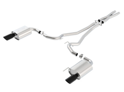 EXCEPT Convertible. Recommended only for vehicles with substantial engine upgrades that require a 3" exhaust. System contains a merge X-Pipe for increased performance and improved sound. This system features the aggressive ATAK(r) sound and exits through 4" black chrome on T-304 stainless steel tips. Using Borla(r) Stainless Steel Polish p# 21461 is not recommended with these black chrome tips. We suggest cleaning the tips with hot water and a microfiber cloth. Borla(r) Cat-Back(tm) and Axle-Back exhaust systems feature patented straight-through and multi-core technology designed to unleash hidden horsepower. Increased exhaust velocity adds power, driving excitement, fuel economy, and the distinctive Borla(r) Sound of Power respected by motoring enthusiasts everywhere. Each system is built from premium T-304 stainless steel, superior to T-400 series knockoffs (such as 409), to give you the absolute best in performance and durability. Ultra-smooth mandrel bends ensure maximum flow & power, and precision computer numerical control (CNC) manufacturing ensures an accurate fit. Best of all, Borla(r) stands behind every system with a Million-Mile Warranty. Just what you'd expect from the world's most experienced (and most winning) exhaust brand.
