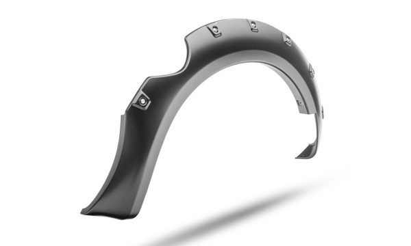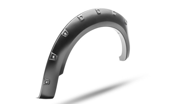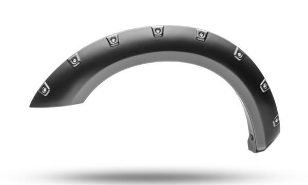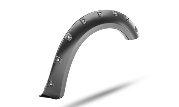 With their surface-mounted stainless steel bolts and massive presence, Boss Pocket Style Fender Flares are a Bushwacker exclusive. Despite their aggressive bolt-on styling, Boss Pocket Style Fender Flares install in minutes, with no body-side drilling. They're custom-designed for your truck to complement oversized tires and high-clearance lift kits. These flares are now available pre-finished to match the paint on your new truck or SUV, plus they have the edge trim and stainless steel hardware pre-installed for quick and easy installation and a perfect fit-no drilling required. Boss Pocket Style Fender Flares are made from our thick, warp-resistant Dura-Flex 2000 material, tailor-made for added durability and flexibility on the trail. When you need maximum tire coverage with minimum time and effort, it's in the pocket. Boss Pocket Style Fender Flares from Bushwacker.