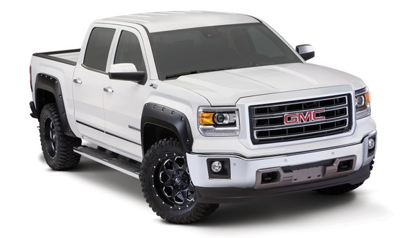 With their recessed stainless steel bolts and massive presence, Pocket Style Fender Flares are a Bushwacker original and an off-road icon. They give you the hard-core look of bolt-on flares, with no body-side sheet metal drilling required. Pocket Style Fender Flares are custom-designed for your vehicle to complement oversized tires and high-clearance lift kits. You can mount them right out of the box with their tough, OEM-style matte black finish they're UV protected so they won't chalk. You can also paint them to match or accent the body color for a factory-custom look. Pocket Style Fender Flares are made from our thick, warp-resistant Dura-Flex 2000 material and tailor-made for added durability and flexibility on the trail. When you need maximum tire coverage with minimum time and effort, it's in the pocket. Pocket Style Fender Flares from Bushwacker.