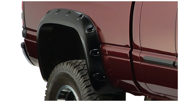 With their recessed stainless steel bolts and massive presence, Pocket Style Fender Flares are a Bushwacker original and an off-road icon. They give you the hard-core look of bolt-on flares, with no body-side sheet metal drilling required. Pocket Style Fender Flares are custom-designed for your vehicle to complement oversized tires and high-clearance lift kits. You can mount them right out of the box with their tough, OEM-style matte black finish they're UV protected so they won't chalk. You can also paint them to match or accent the body color for a factory-custom look. Pocket Style Fender Flares are made from our thick, warp-resistant Dura-Flex 2000 material and tailor-made for added durability and flexibility on the trail. When you need maximum tire coverage with minimum time and effort, it's in the pocket. Pocket Style Fender Flares from Bushwacker.