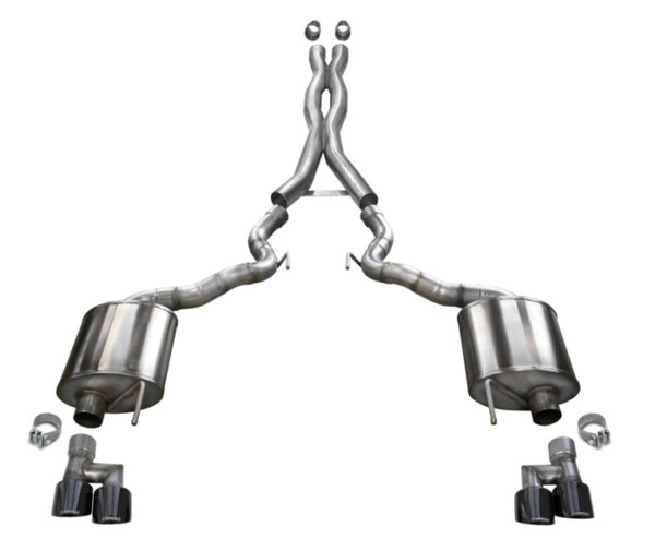 Corsa 2018-2023 Ford Mustang GT Convertible w/o Active Valves Xtreme Cat-Back w/ Black PVD 4in Tips - 21048BLK