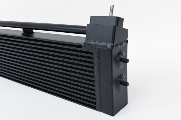 The original OE oil cooler from BMW is an all metal design which would make you think it would be fairly robust. However, there are several weak spots in the design that tend to cause leaks. The CSF Race-Spec design reinforces the weak points, especially around the feed and return lines. CSF's solid line connection block can handle any abuse thrown at it while the reinforced and braced return tube is rock solid. CSF also upgraded the more fragile Tub/Fin core to a robust and durable Bar/Plate design. The core is 40% larger than the factory unit with 2 additional rows of oil cooling and much thicker core (63mm vs OE 45mm). This offers superior cooling capacity and volume for the oil system. TIG welded end tanks round out the slew of upgrades creating a much stronger connection than the factory brazed construction.