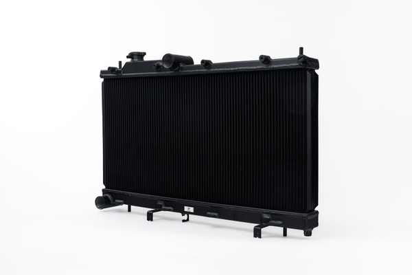 CSF has over 5 decades of experience manufacturing radiators. So when it comes to keeping your engine cool and your WRX/STI running at its best, a CSF High-Performance All-Aluminum Radiator is the obvious choice. Designed to perform on the street or at the track, a performance radiator is a must-have for both high horsepower builds as well as race vehicles which need added cooling performance in motorsports environments. This radiator features a 2-Row core with CSF's exclusive B-Tube Technology: Unlike a regular oval shape "O" type radiator tube, CSF uses a specially engineered tube in the shape of a "B". These "B-tubes" are carefully formed and then brazed over the seam to seal. CSF is able to use thinner and lighter aluminum material (with better cooling efficiency) because this design is actually stronger than normal "O" shape tubes that are welded. The design (inlet in the middle of the tube that is seam brazed) increases the heat transfer surface area of the tubes by approximately 15% over regular tubes - producing the efficiency of two smaller tubes vs. one large tube within the same space criteria. With "B-tubes" you are able to get "dual liquid laminar flow". CSF also uses ultra efficient multi louvered fins that are carefully and precisely aligned to maximize airflow through each radiator core. Fin specifications are carefully measured and calculated for each application, and tested for maximum heat rejection efficiency in our wind-tunnel lab.