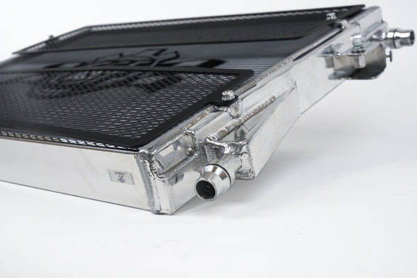 The CSF Heat Exchanger features a 2-Row (vs OEM single row) Core that is 42mm thick with CSF's Exclusive B-Tube Technology. Increasing the size of the core and end tanks adds to the overall volume of the system which helps absorb more heat. The more efficient core not only helps dissipate more heat from the system, but also provides better airflow into the radiator that sits behind the heat exchanger. For vehicles equipped with the ZF8 Automatic Transmission, the heat exchanger core specifications were design concurrently with CSF's new Race-Spec Dual Core Transmission Oil Cooler (CSF #8221). The two included Black Rock Guards offer full protection for the heat exchanger (above and below the crash bar), especially when paired with aftermarket "open face" race style grilles. These grilles have become quite popular for performance and aesthetics, and keeping your heat exchanger safe from debris is very important. With well over 100 track hours worth of testing and thousands of miles on the road, you can be assured that the CSF's new High-Performance Front Mount Heat Exchanger has been thoroughly tested and vetted.