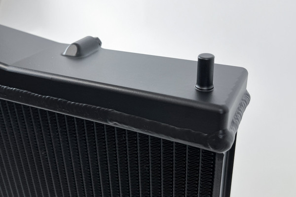 The 2-Row 42mm core greatly not only increases the fluid capacity of the radiator, but also improves the cores ability to dissipate heat. CSF's Exclusive B-Tube Technology increases the heat transfer by approximately 15% over regular oval welded tubes. In addition, the super-efficient multi-louvered fins maximize airflow through the core for the best possible performance. More cooling rows also improve the overall efficiency of the radiator. More cooling tubes means more surface area for the coolant's heat to dissipate from. Each end tank is CNC machined billet aluminum giving them incredible strength and durability. CNC machining offers incredible precision and uniformity. The results are perfectly produced end tanks that perfectly match up with the ends of the 42 mm core. Hand TIG welding joins the tanks to the core creating the strongest radiator on the market for the R33 Skyline. Each radiator includes a 1.4 bar high pressure cap with an embossed CSF logo. High pressure radiator caps raise the boiling point of coolant. This helps protect the system from boiling over at higher operating temperatures. While the radiator is designed to keep the system from reaching such temperatures, it is always good to have extra protection for situations where the coolant gets too hot. The CSF #7219B comes in Black. Also available in a raw billet aluminum finish (CSF #7219).