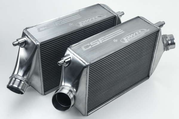 The advantage of a rolled tube core is the rounded edge which allows airflow to travel around the tube face and into the intercooler core for maximum airflow and heat dissipation (Compared to the OEM flat face tube which scatters airflow when contacting the tube face). Both the OEM intercoolers and the CSF by PWR upgraded performance intercoolers are designed around 87mm thick cores with 103mm wide side channel end plates. This allows for a true plug-and-play "drop-in fit" installation that requires absolutely no modifications to install, and does not require trimming of the expensive OEM carbon fiber air ducts.