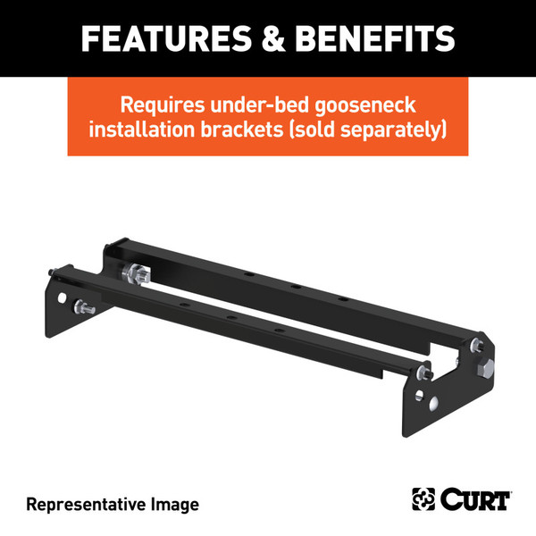 CURT fixed ball gooseneck hitches are built to deliver all the towing power you need to tackle the demands of the job, without breaking the bank. When your day starts the moment you climb into the seat of that full-size 4x4 pickup, your towing equipment needs to be a reliable extension of your truck. CURT fixed ball gooseneck hitches are a permanent towing solution that offer reliable strength at an economical price. This CURT fixed ball hitch features an over-bed design, installing directly on top of your truck bed using CURT over-bed gooseneck installation brackets. It offers a gross trailer weight capacity up to 30,000 lbs. to allow you to tow whatever heavy-duty trailer you need, from point A to point B, whether a livestock trailer full of horses, a flatbed piled with building materials or a car hauler carrying a backhoe. This fixed ball gooseneck hitch also comes with a standard 2-5/16" gooseneck trailer ball welded onto a thick 13" x 48" steel plate and two 1/2" forged, welded D-rings to attach safety chains. The fixed design ensures the ball can never be loosened or stolen, increasing safety on the road and preventing theft. Also, to ensure that CURT fixed ball gooseneck hitches can indeed be called CURT hitches, we finish them in a durable carbide powder coat that provides the necessary protection against rust, wear and other everyday threats you meet off the beaten path. For the best quality and durability in gooseneck towing, CURT is the obvious choice. We carefully engineer, test and manufacture our gooseneck hitches to meet today's safety standards and exceed all expectations. For a gooseneck hitch with all the quality of a CURT hitch and the economy to keep your wallet full, there is nothing like a CURT fixed ball gooseneck hitch.
