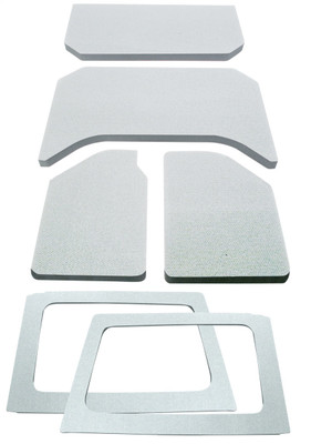 BOOM Mat's new Jeep(R) Wrangler Sound Deadening Headliner provides a simple pre-shaped peel and stick kit that dresses up the interior of Jeep hard tops while minimizing annoying outside noise and vibrations while insulating from exterior weather conditions. Riding in a Jeep is great fun except for the truck's propensity for interior noise that makes it difficult to engage in conversations or even enjoy vehicle audio systems. Now there is an easy solution. Installed Boom Mat's new Sound Deadening Headliner has been tested to reduce noise levels from 3 to 4 decibels. This is a significant change in sound level that will improve overall interior acoustics so Jeep occupants can enjoy audio system and have conversations without excessive and irritating noise distractions. Headliner reduces noise levels 3 to 4 decibels Reduces radiant heat from roof Improves acoustics inside A significant change in noise level that will make it easier to have conversations & enjoy your favorite music 5 piece kit for 2004-2006 LJ Wranglers Open Cell Polyurethane Foam Finish is a Polymer Surface Treatment