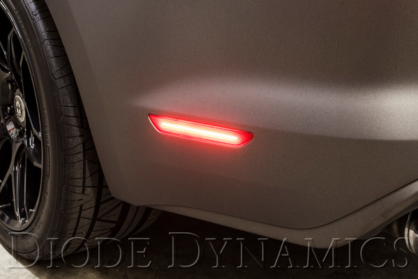 FeaturesModern LED replacements compatible with Ford Mustang 2015-2023 factory sidemarkersIncreased output with unique stylingOEM-grade retroreflector opticsAvailable in red clear or smoked lens optionsEngineered and assembled in USAOverviewUpgraded Styling. If you're looking to give your vehicle an upgrade in styling and appearance this is the perfect way to do it! These replacement units are loaded with hundreds of LEDs for a modern and unique appearance. With the full LED array they illuminate brighter than factory as well! Choose from three lens color options to match your vehicle or preference.OEM Grade. Unlike other sidemarkers on the market Diode Dynamics lamps use OEM-grade retroreflector optics which provide required the reflective safety and a clean premium appearance when off unlike diffuser" or plain flat lenses without any reflective features. The units themselves are designed directly from OEM CAD data for a perfect fit and the connector plugs right into the factory socket.Reliability. These LEDs are designed with newer constant-current circuitry and transient voltage protection. These features found in factory-installed lighting components protect the circuit over time ensuring years of flicker-free performance."