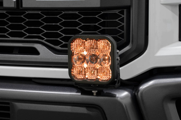 FeaturesBolt-on fitment compatible with Ford Raptor 2017-2020Ultra-high intensity with custom-engineered TIR opticsSelectable backlight color with eight color optionsTorture-tested heavy-duty constructionControl through factory aux switch bank using the included harnessAssembled in USA OverviewPerfect Fitment. The Bumper LED Pod Light Kit compatible with Ford Raptor 2017-2020 from Diode Dynamics allows you to mount two SS5 LED pods on the factory bumper. These application-specific brackets were CAD-designed to bolt into place using factory mounting points.Designed for Performance. Featuring the highest output intensity of any 5-inch LED pod on the market these lamps have been designed for maximum functionality with patented technology and custom-engineered TIR optics all in a durable package.Selectable Backlight. The Stage Series 5inch LED Pods included in the White kit feature a selectable backlight with eight different color options perfect for an extra styling accent or for more visibility when you(TM) re not using the main beam. Selecting your backlight color is easy - simply alternate the power on and off. There(TM) s no complicated programming with a controller! The SS5's backlight fully illuminates the TIR optic providing unique accent lighting that you won't find on other LED pods. NOTE: Due to the yellow lens the Yellow kit is only available with an Amber backlight color.NOTE: The existing mounting points must be drilled out larger in order to secure the bracket.