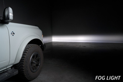 Features Bolt-on fitment compatible with Ford Bronco 2021+ with steel bumper. Adds SAE-compliant fog lights and powerful offroad lighting. Harnesses included for independent control of road-legal and offroad lighting. Backlight feature provides amber accent light. Highly durable powdercoated stainless steel bracket. Engineered and assembled in USA. Overview. The Stage Series Fog Pocket Kit compatible with Ford Bronco 2021+ from Diode Dynamics allows you to mount two SS3 LED Pods and four SSC2 LED pods in the factory bumper openings. This kit adds some serious functionality to your Bronco with both road-legal fog lights and powerful offroad lighting. This kit includes application-specific brackets that were CAD-designed to install using factory mounting points. No cutting or drilling required! Lighting for Every Situation. This kit includes two SS3 LED Pods in the fog beam pattern and four SSC2 LED pods in the combo beam pattern. This combination gives you different options whether you are on or offroad. All options use high-intensity LED emitters and TIR optics for unmatched focus and overall output. Separate Switches. With the included harnesses the two SS3 pods and four SSC2 pods in this kit can be controlled independently allowing you to switch between road-legal fog lights and offroad lights. This kit allows the SS3 fog pods to operate in the same way factory fog lights do automatically turning on when they are switched on and when your headlights are turned on. The off-road lights in this kit can be controlled either through factory aux switches or the included 3-way toggle switch. SAE Compliant. When installed as a pair and aimed in accordance with your state's regulations the Fog pattern meets SAE J583 standard as a Foglamp for legal on-road use.