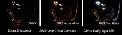 Features Direct replacement for factory 28mm festoon bulb Adds more modern LED appearance Plug and play simple installation Overview Design. The 28mm SMF1 LED bulb is a direct replacement for any 28mm-size bulb commonly found in vanity mirror lights in many vehicles. Populated with one 5050-size SMD the SMF1 upgrades the factory yellowish incandescent bulb to a more modern LED appearance. The SMF1 was designed with an embedded load resistor and implanted diode for superior reliability. With its durable metal terminals it will fit snugly in the socket and its light weight means it won't vibrate loose over time. Reliability. Unlike other bulbs on the market this bulb is built with constant-current circuitry along with transient suppression. That means this bulb will last for years not months with no flickering or failure. And like every Diode Dynamics product it's backed by an industry-leading three-year replacement warranty. Brightness. With 16 lumens of true measured output the SMF1 LED will provide similar light output to your original 28mm-sized bulb. If you are looking to increase output we'd recommend checking out our SMF2 option! All Diode Dynamics LED lighting is rated with accurate measured lumen figures not calculations or guesses. We test the true output in-house and provide you the real numbers to compare. Colors. In addition to vibrant colors of blue red amber and green the SMF1 is available in a cool white 6000K and warm white 3000K option as well. Whether you want a modern cool white appearance or a traditional warm white color we have the color to fit your need!