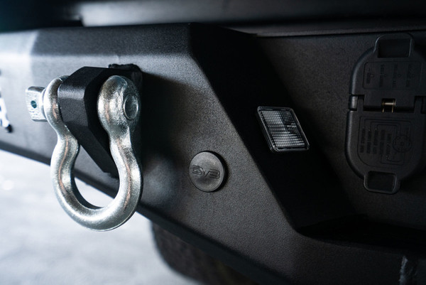 Our MTO Series Tacoma Rear Bumper was designed as a direct replacement to the factory bumper, with no cutting or modification required for installation. It brings the addition of 2 reinforced clevis mounts that take 3/4-inch D-rings, providing you with recovery options. A 3-inch light pod can be mounted behind the aluminum mesh panels towards each end of the bumper. ?At each corner of the bumper is a side step, for convenience in accessing the truck bed. The MTO is compatible with factory rear parking sensors and retains full functionality. The blind spot detection module does not function with this bumper.