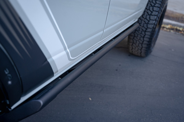 Our FS-15 Series Rock Sliders for the 2021+ Ford Bronco were designed to protect the sides of your ride from large rocks and other obstacles on the trail. They serve as a more robust replacement for the available factory steel rail.?They mount directly to the frame using factory hardware, providing maximum rigidity and preventing damage or bending to the steel side body panels. The tubes are constructed from 3mm steel & the plates are made from 5mm steel, providing superior protection. They come finished in our Micro-Texture Black Powder Coat to match factory trim and prevent rust.