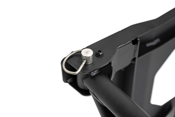 The Bronco Spare Tire Guard was designed with several functions in mind. After upgrading to larger tires, the spare tire has been known to cause flex in the tailgate due to the added weight on the factory carrier. The tire guard reinforces the tailgate by mounting to multiple points along the tailgate, increasing rigidity. It also provides a mounting location for gear such as hi-lift jacks, a shovel, tanks, and more. Additionally, the guard can accept locking pins (not included) for security against theft.