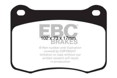 EBC Yellowstuff is an aramid fibre based brake compound with high brake effect form cold and is possibly one of the first ever compounds that can be used for STREET AND TRACK DRIVING. These pads do not require warm up but do get even stronger under the heat of hard driving. These are not a low dust pad and if your desire is for a low dust premium street use pad, you should consider EBC Redstuff.When considering full race use, Yellowstuff has been a strong favourite, having been used for two years in the Swedish Camaro Cup and at numerous other race events where a stock caliper system is fitted.It is also the choice of 90-percent of the Mazda MX5 Miata competitors in the UK race series and has an unblemished record as rotor friendly track pad for vehicles up to 2000 lbs weight or 200 BHP.In the USA the SCCA and NASA drivershave been testing Yellowstuff with feedback and good reports POURING in from a 543 test driver major market proving event with these groups. Read that figure again 543 test drivers.There is no guesswork here.