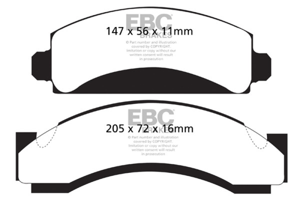 EBC Yellowstuff is an aramid fibre based brake compound with high brake effect form cold and is possibly one of the first ever compounds that can be used for STREET AND TRACK DRIVING. These pads do not require warm up but do get even stronger under the heat of hard driving. These are not a low dust pad and if your desire is for a low dust premium street use pad, you should consider EBC Redstuff.When considering full race use, Yellowstuff has been a strong favourite, having been used for two years in the Swedish Camaro Cup and at numerous other race events where a stock caliper system is fitted.It is also the choice of 90-percent of the Mazda MX5 Miata competitors in the UK race series and has an unblemished record as rotor friendly track pad for vehicles up to 2000 lbs weight or 200 BHP.In the USA the SCCA and NASA drivershave been testing Yellowstuff with feedback and good reports POURING in from a 543 test driver major market proving event with these groups. Read that figure again 543 test drivers.There is no guesswork here.