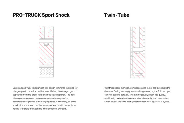 The PRO-TRUCK Sport Shock is the perfect solution for those looking for a straightforward, reliable damper setup that gains ground clearance, ride comfort and additional travel without requiring any additional suspension components. For optimal performance, PRO-TRUCK Sport Shocks are designed to be used in conjunction with Eibach PRO-LIFT-KIT springs.