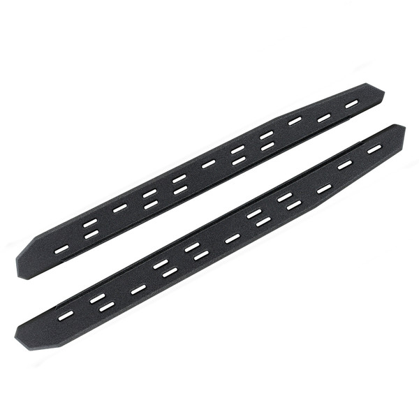 The RB30 Slim Line Running Boards offer the same heavy duty toughness as the original RB Series, but with a slimmer design that fits tighter along the cab for increased ground clearance when off-roading. Constructed from 16-gauge zinc-coated galvanized steel, the Raptor-inspired boards were built to protect your panels from flying debris while providing a full-length step platform. The modern, bullet-stamped design is 5" and are offered in cab-length sizes that fit most popular trucks, Jeeps and SUVs. RB30 Slim Running Boards come with a Limited Lifetime warranty on materials and construction and a 5 year warranty on the Bedliner Finish.
