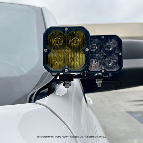 The Dogbone Light Mount bracket allows for an extra 3" X 3" industry standard dual cubes LED, driver and passenger brackets that attach to XE Hood Hinge Mounts. Light Mount Brackets come with a Limited Lifetime warranty on materials and construction and a 5 year warranty on the Textured Black Finish.