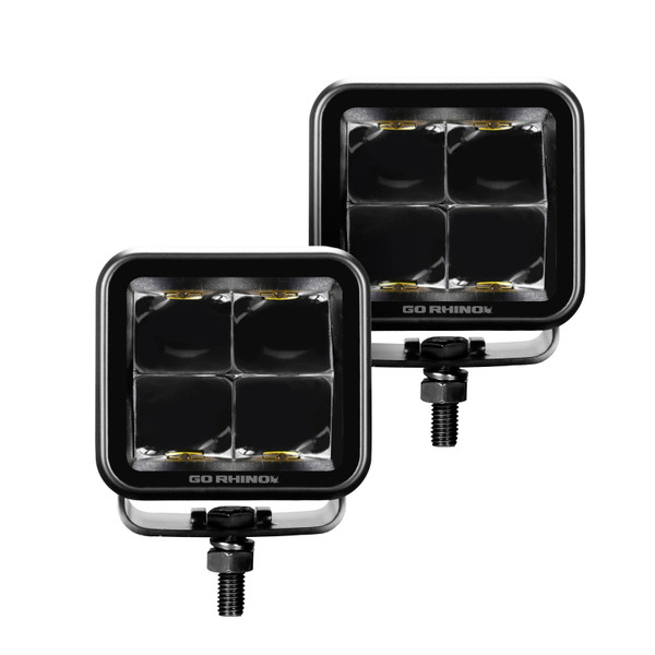 Go Rhino Xplor Blackout Series Cube LED Spot Light Kit (Surface/Threaded Stud Mnt) 2x2 - Blk (Pair) - 750200321SCS