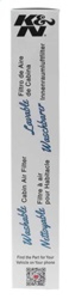 K&N washable cabin air filters are engineered to fit directly into your factory air box, offering excellent protection from environmental contaminants and odor-causing particles. The thermally bonded high-flow synthetic material acts as a physical barrier, helping trap dust, pollen, mold, bacteria, fungi, and other pollutants, and is specially pleated to increase the contaminant-capturing surface area. Each filter is engineered to install easily into your factory cabin air box, and is designed to be easily washed and reinstalled whenever necessary. Buy with confidence under the K&N 10-Year/Million Mile Limited Warranty.