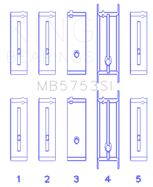 King Engine Bearings ChevrolET/Isuzu Ohv Ln2 Fl O/S 010 (Size +0.50mm) Main Bearing Set - MB5753SI0.5