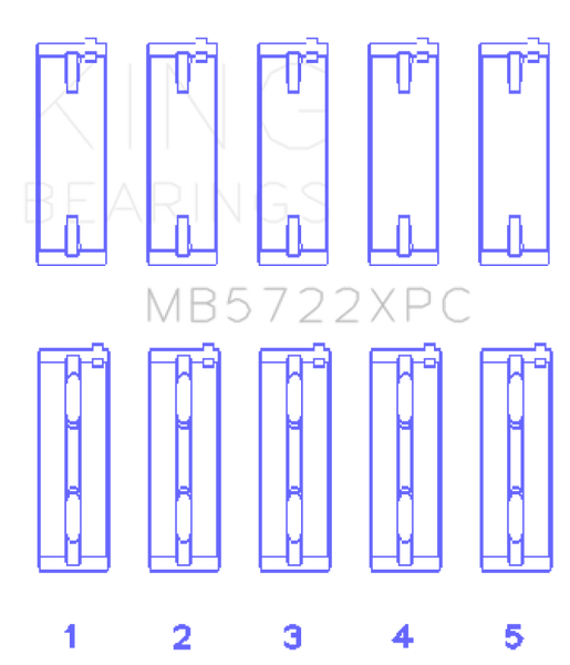 King Mitsubishi 4B11T EVO X 2007+ (Size 0.25) Coated Performance Main Bearing Set - MB5722XPC0.25