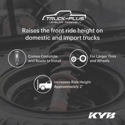 The KYB Truck-Plus Leveling Assembly is the best replacement strut assembly solution to raise the front of your truck. KYB does not cut corners or take a one-size-fits-all approach when designing and manufacturing the Truck-Plus. Unlike competitors, KYB manufactures corner-specific part numbers to help restore designed performance on your vehicle. Consider this, a strut assembly handles vehicle weight, determines ride height, acts as the steering pivot, controls vehicle stability and can affect a vehicles electronic crash avoidance systems. Dont trust a part designed to fit multiple vehicles and dont trust anything less than KYB.
